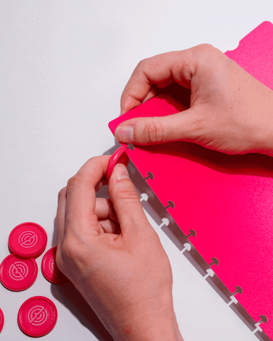 Hyper solide ! La reliure à disques et nos couvertures sont conçues pour durer et pour être manipulée souvent. Les pages ne se déchirent pas si tu les retires correctement, et les disques sont en plastique rigide hyper résistant. L’objectif est que ton carnet puisse t’accompagner durant des années ! Et lorsque tu en auras marre, ou s’il s’est abimé, tu pourras simplement remplacer les éléments que tu souhaites individuellement, sans tout jeter !